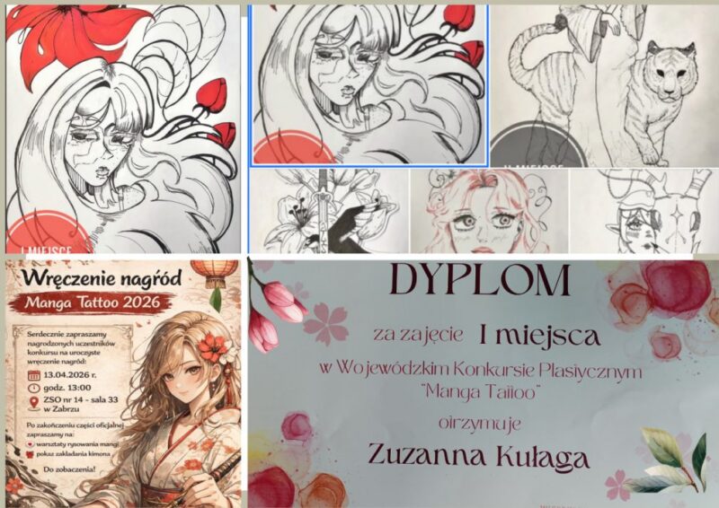 ZSO nr 14 w Zabrzu, w poniedziałek – 13.04.2026 zorganizował podsumowanie wojewódzkiego konkursu plastycznego. Uczennica naszej szkoły – Zuzanna Kułaga z klasy 6c zdobyła I miejsce.